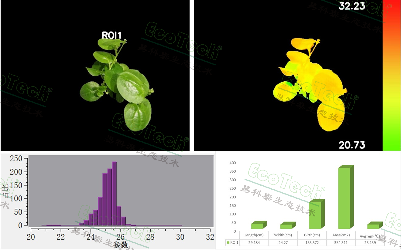 • ¿É¶Ô¾«×¼Ñ¡È¡µÄROI£¨ÈçвÆÈÖ²ÎïºÍδвÆÈÖ²Î¾ÙÐÐÎÂ¶ÈÆÊÎö£º°üÀ¨×îµÍζȡ¢×î¸ßζȡ¢Æ½¾ùζȡ¢ÆµÌ¹ÂÊ·½Í¼µÈ£¬²¢¾Ý´ËÆÊÎö²¡º¦µÈвÆÈÒ¶Æ¬Æø¿×µ¼¶È¡¢Î¶ȵÄÓ°Ïì¼°ÏìÓ¦